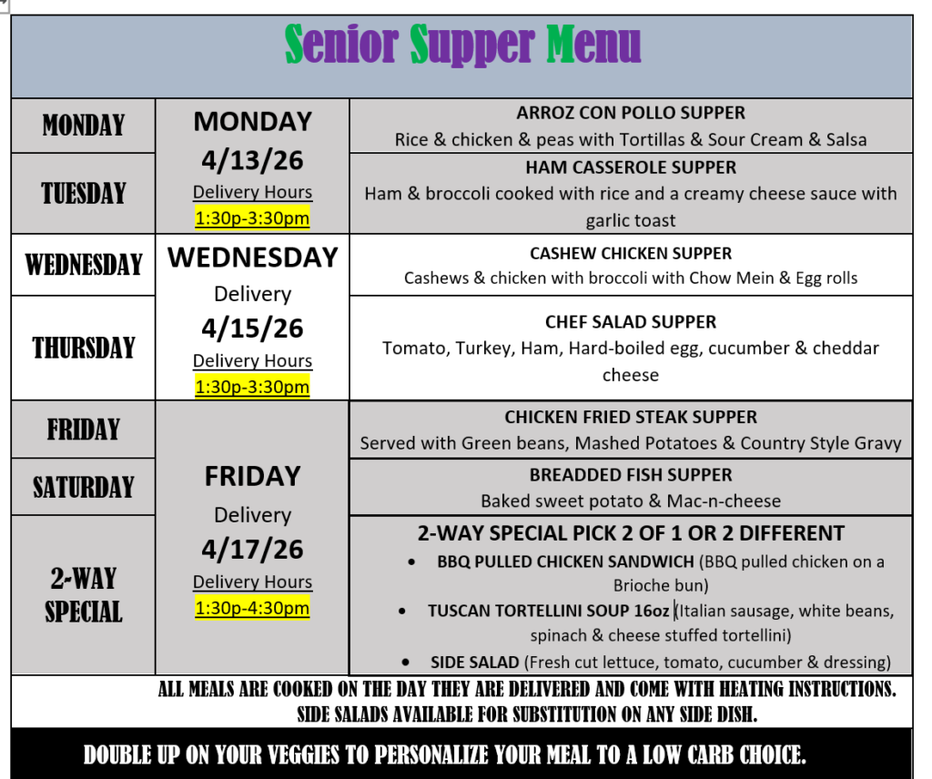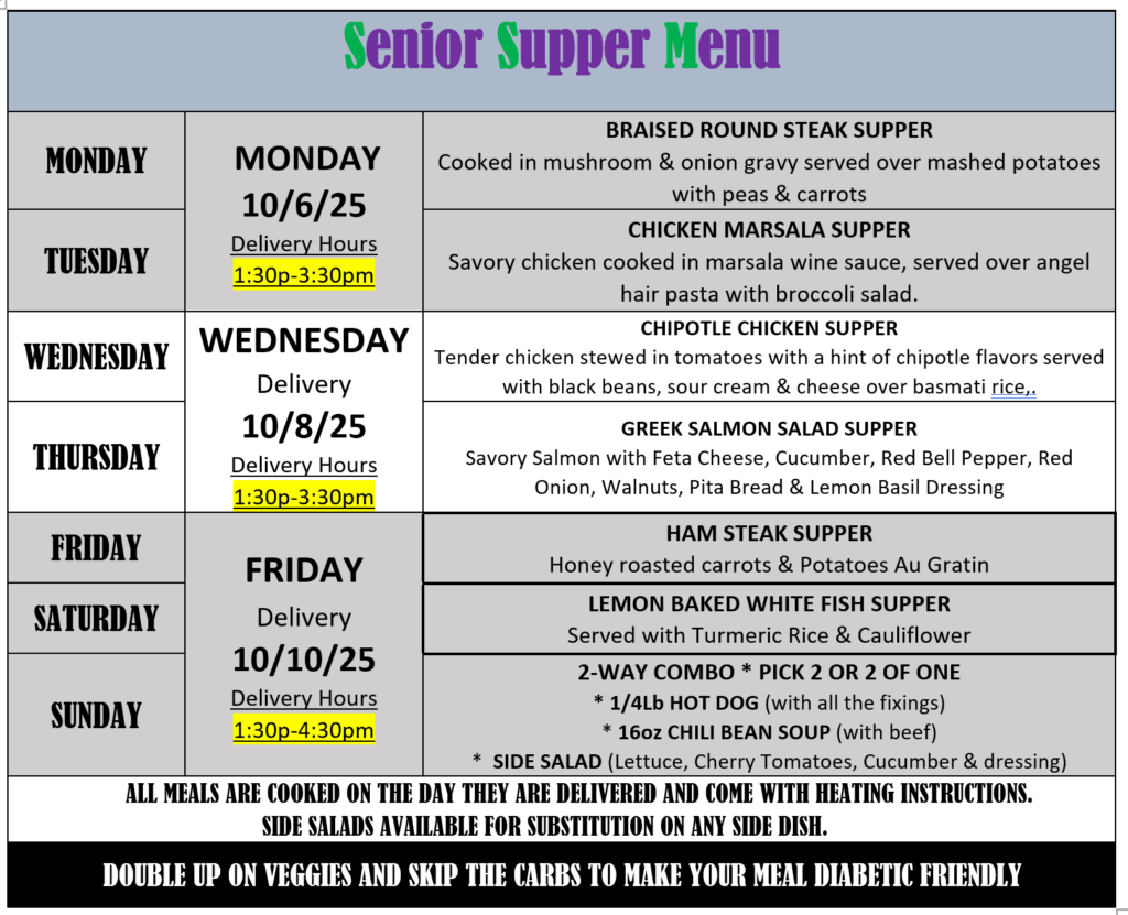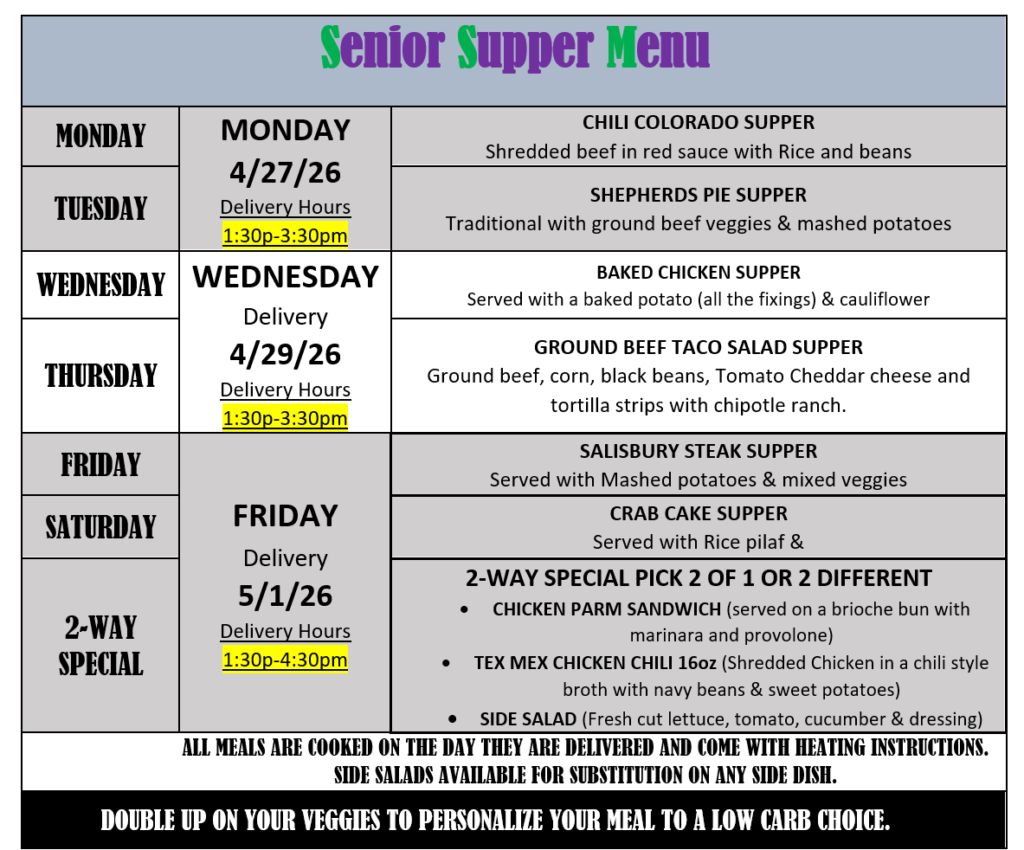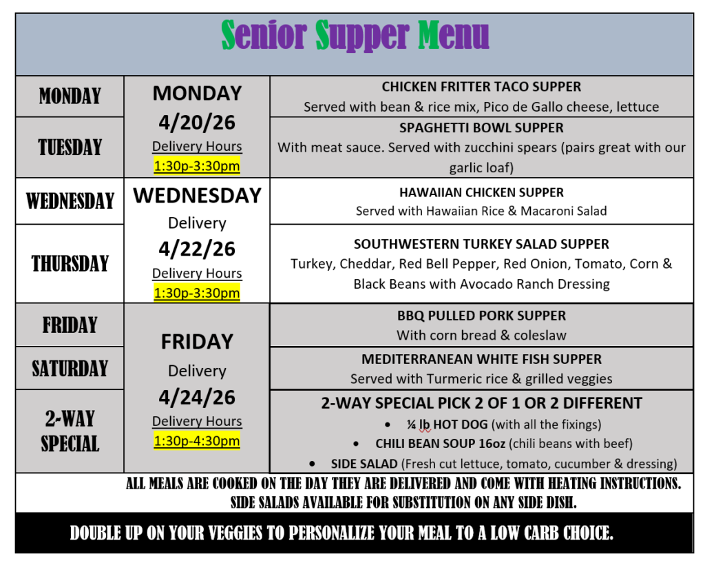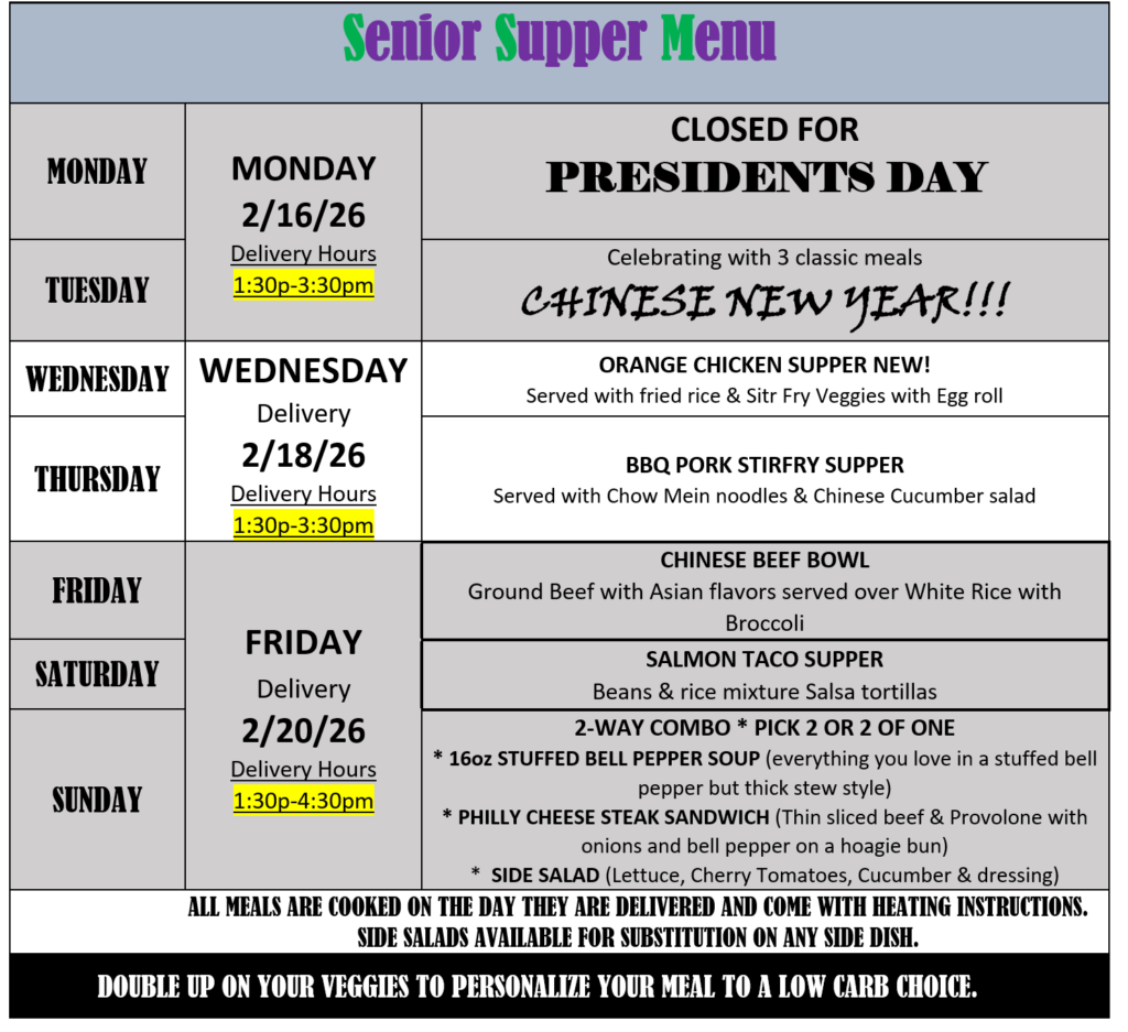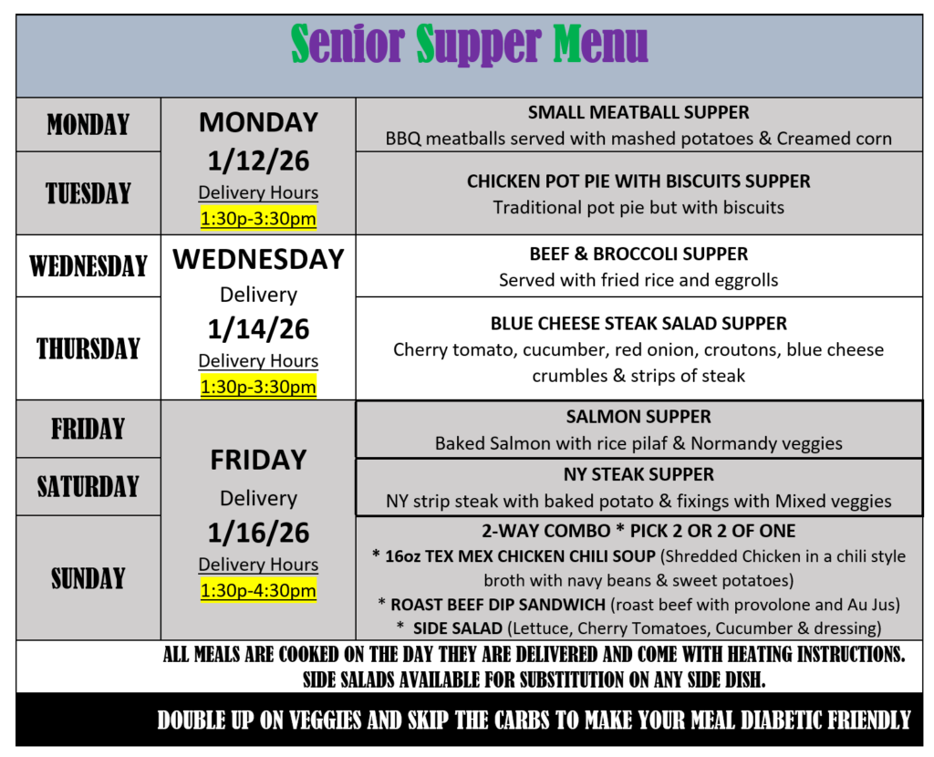 Senior Supper Services an exclusive Meal Delivery Service for Seniors 60+