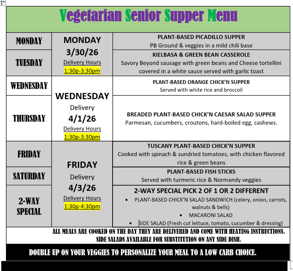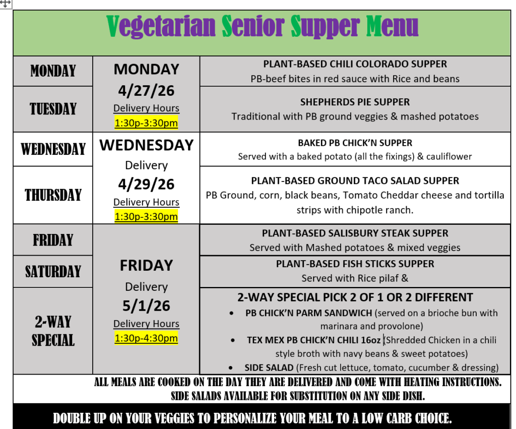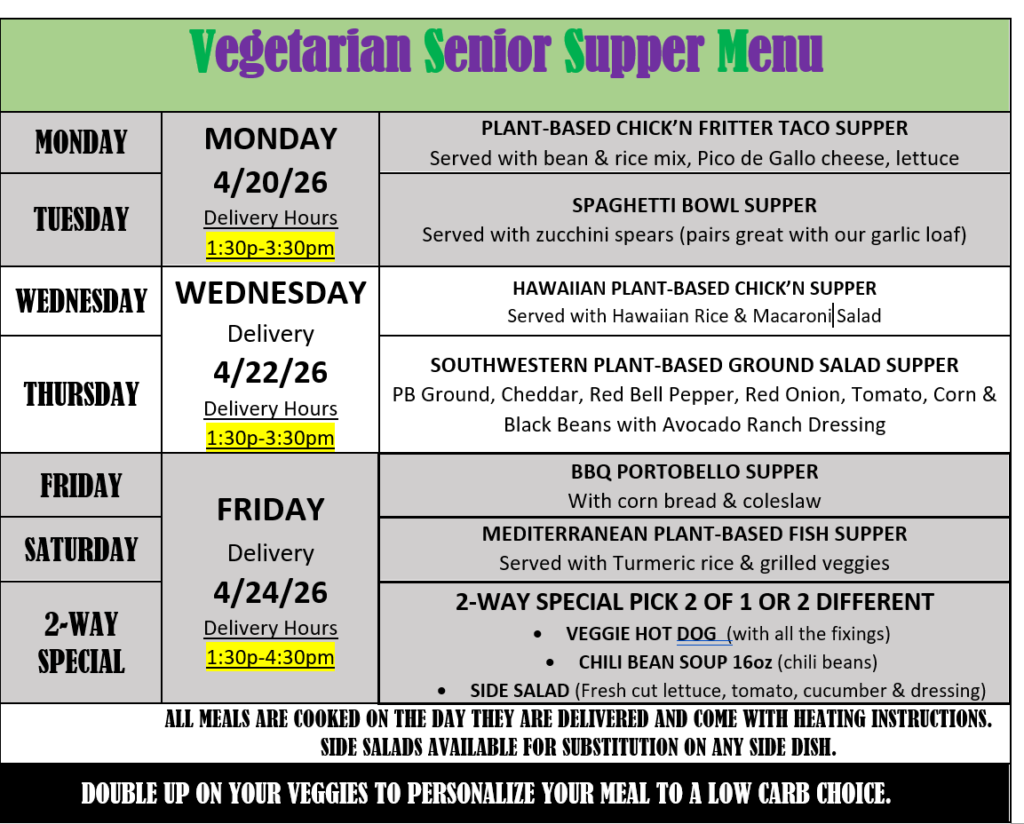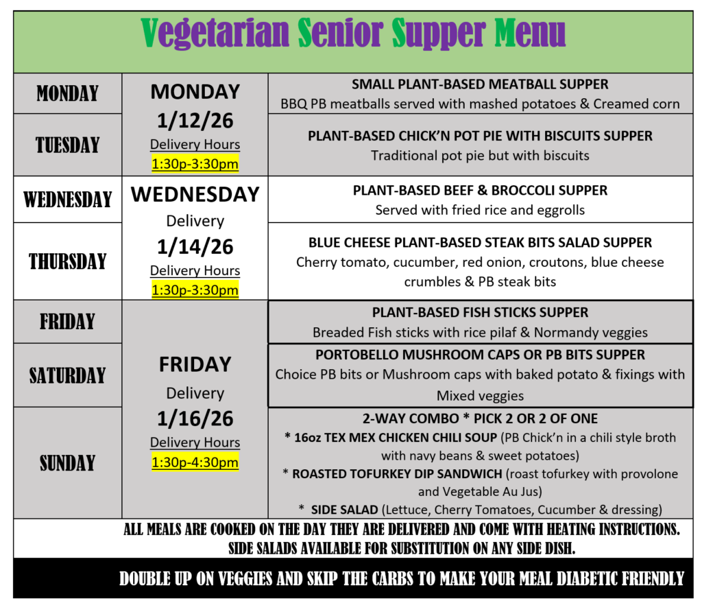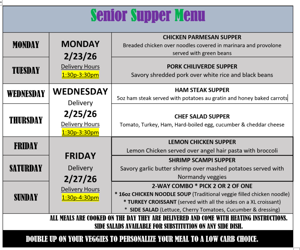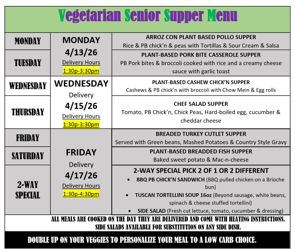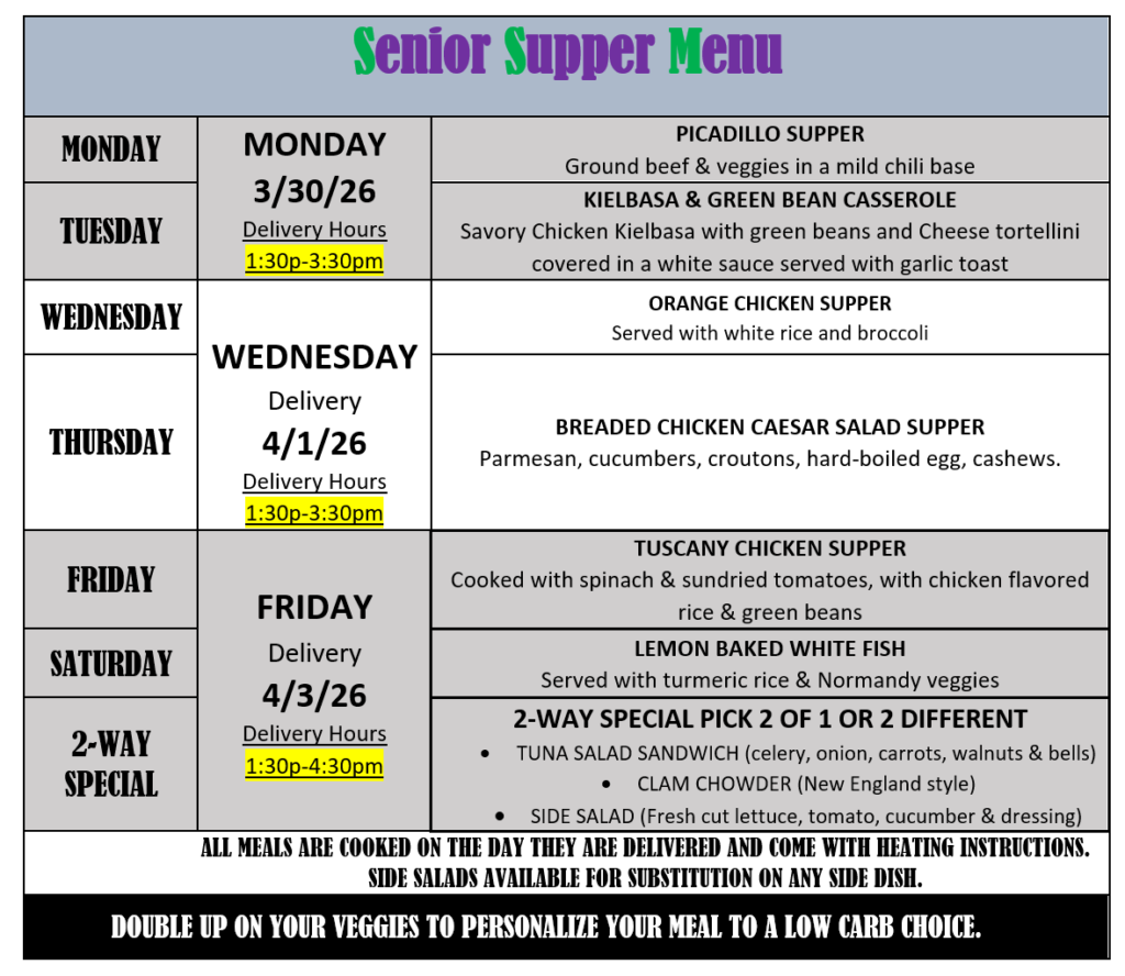 Senior Supper Services an exclusive Meal Delivery Service for Seniors 60+