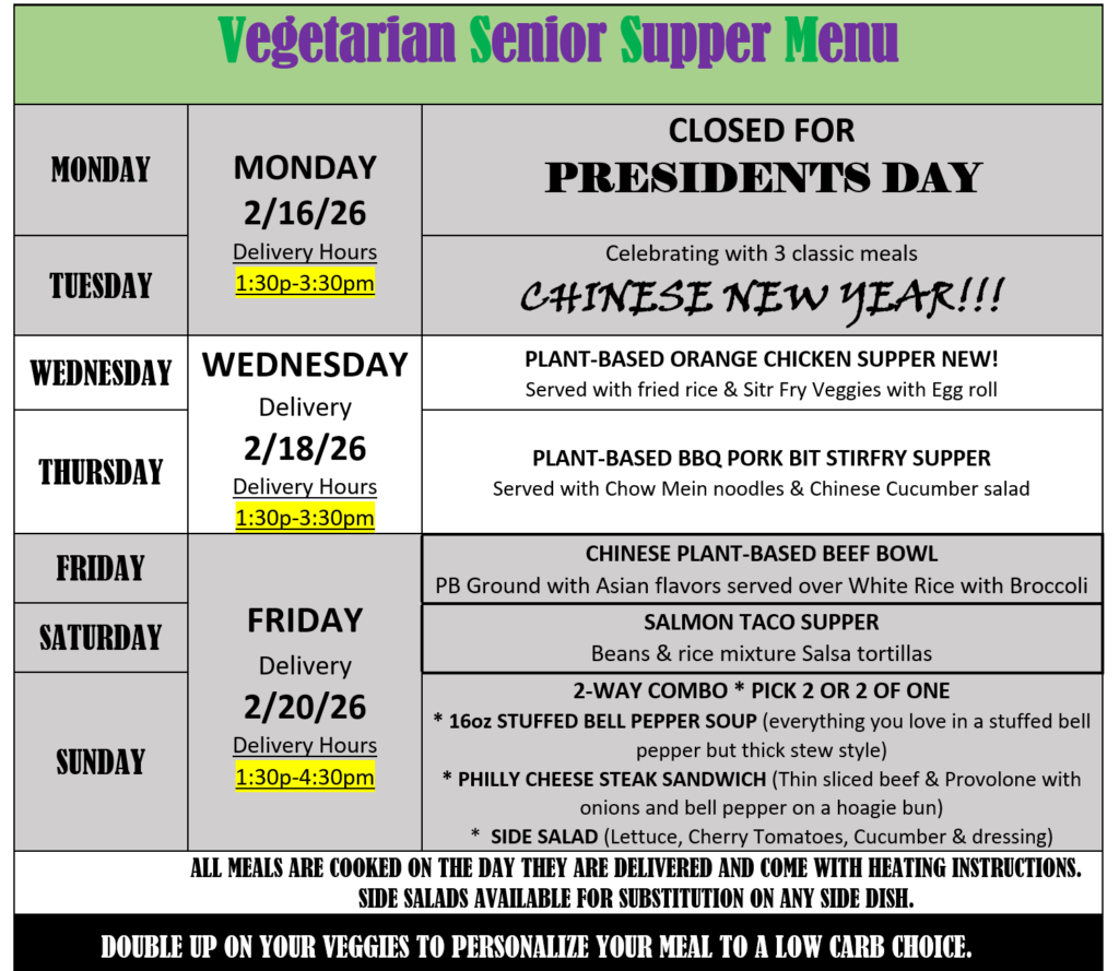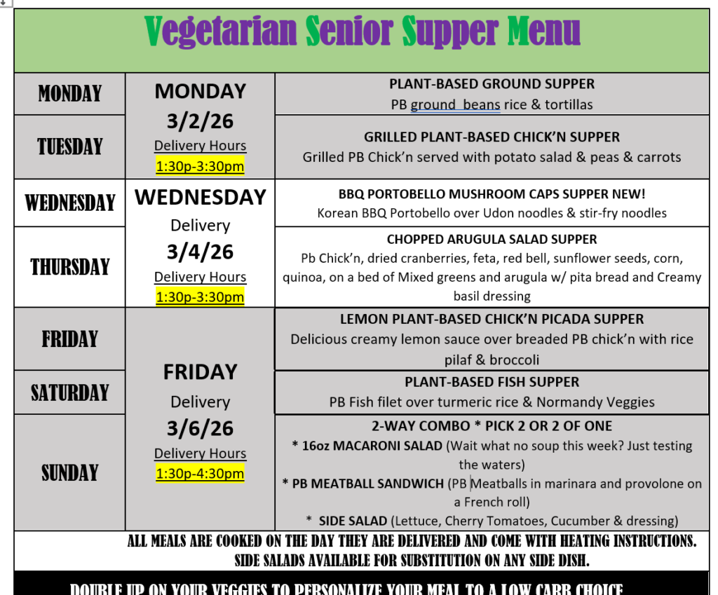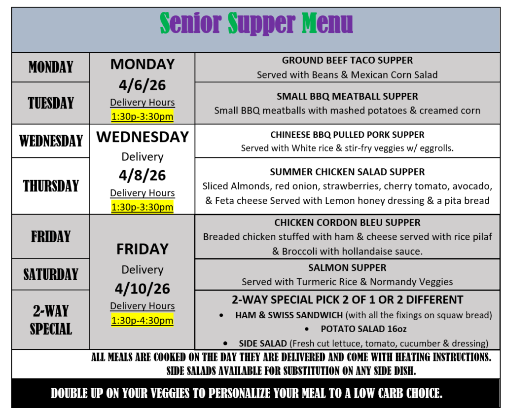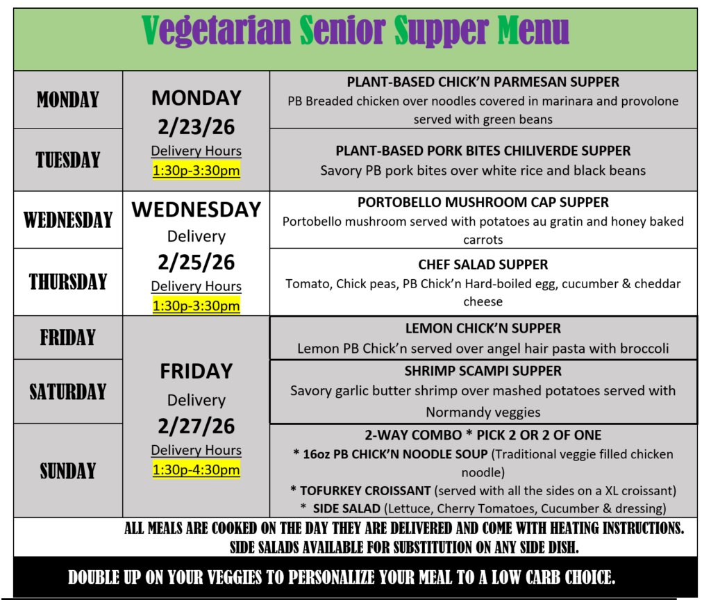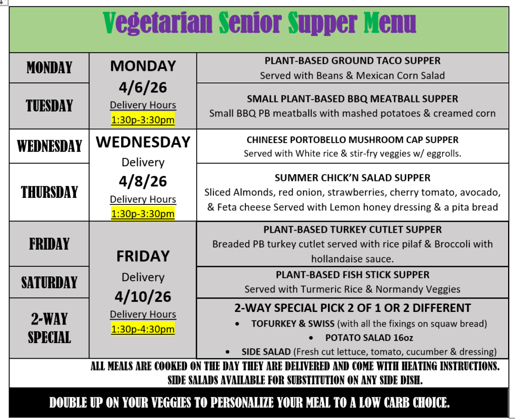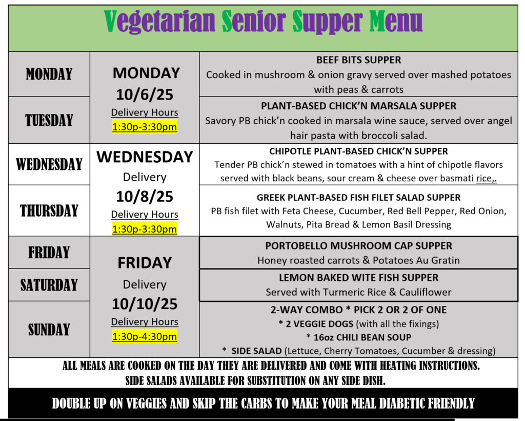 Senior Supper Services an exclusive Meal Delivery Service for Seniors 60+