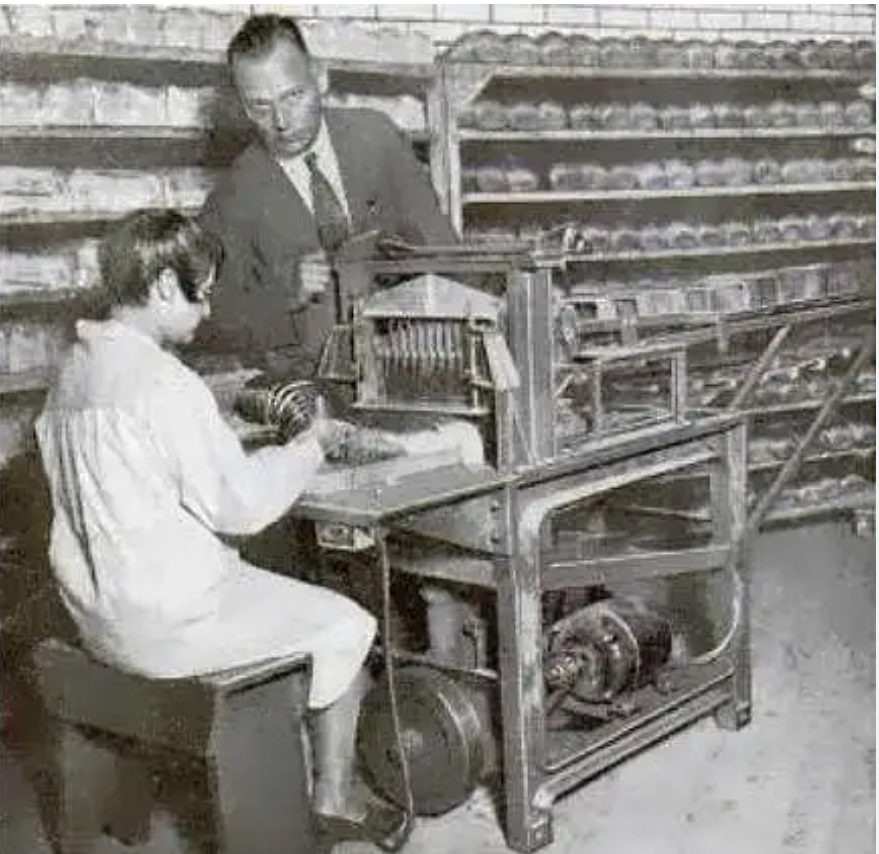 Result makeshift bakeries in cellars abound. The breads made by these home-based bakeries were considered “dark and dirty” bread. Dark because the wheat used was ordinary wheat in its natural form. Dirty because of the unsanitary conditions under which it was produced. All bread was “dark” until mechanical milling machines were invented— they separated the wheat from its oily component, resulting in what became known as “white” flour. White flour was considered unhealthy because all nutrients had been removed by the milling process. Two things would later come into play which would offset the stigma of denuded white bread—packaging and the electric bread slicer.