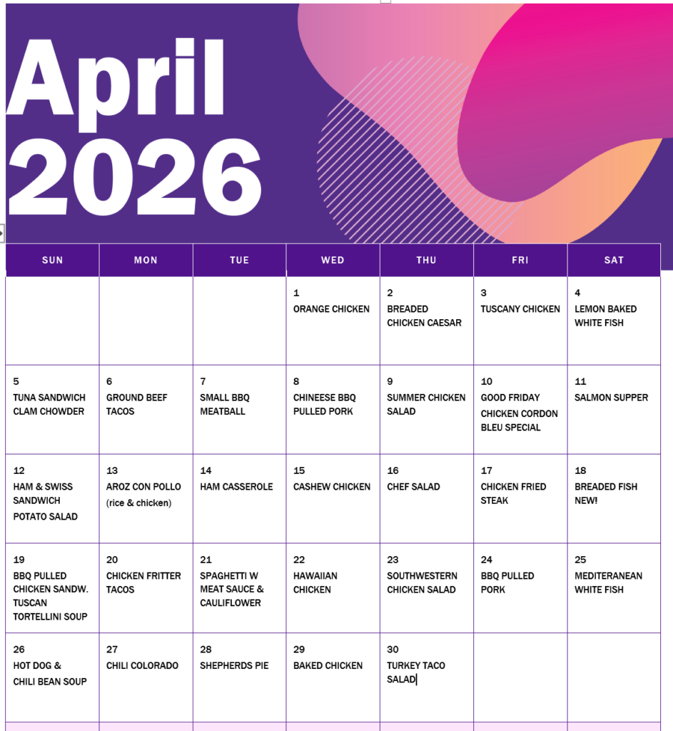 APRIL 2026 MENU LINEUP